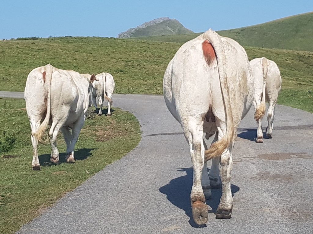 Enfin le panneau Argentat. De chaque côté de la route, les champs à l’herbe verte craquante bordés par la forêt. Les vaches affalées à l’ombre des châtaigniers attendent, les pis gonflés et fatalement douloureux, le retour à l’étable. Roulant au pas derrière le troupeau sur la route sinueuse remonte à nos narines l’odeur acide et douceâtre de la bouse fraichement expulsée. Balancement de fessiers bovins généreux et crasseux, queues imbibées de purin qui fouettent les flancs constellés de mouches, ça sent la relâche et les grandes soirées allongées sur la fière bande de goudron du hameau déserté, les mirettes écarquillées à l’affut des évanescentes étoiles filantes.