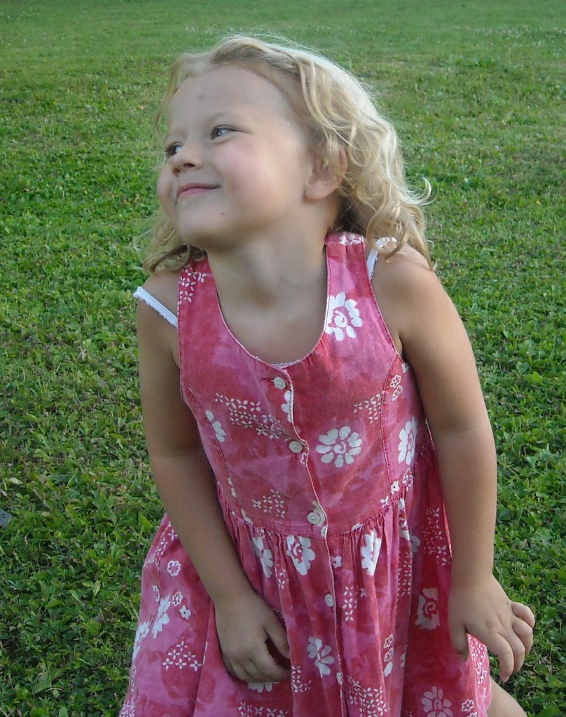 Haute comme trois pommes, la bouille toute ronde, des joues roses bien pleines, des boucles blondes presque blanches, de grands yeux noirs profonds toujours écarquillés et un éclat de rire en cascade qui l’accompagne, bien plantée sur ses petites jambes potelées de 5 ans, elle court partout. Elle ne perd pas une occasion de lâcher la main de sa mère pour filer explorer le moindre interstice où elle pourrait glisser un œil, un doigt, ou encore un orteil. Elle s’échappe en un instant, happée par les 1000 mystères de la rue et de ses portes entrouvertes vers une infinité de mondes. Son audace s’arrête dès qu’en se retournant elle comprend qu’elle a perdu le lien précieux du regard aimant et attentif de sa maman. Et elle se met à hurler avec plus de puissance que le camion de pompier. Nullement besoin de la grande échelle pour la sauver, son cri déchirant fait accourir la maman, mi-amusée, mi-exaspérée, qui généralement l’observe du coin de l’œil, fascinée par autant de témérité épuisée de toute cette énergie.