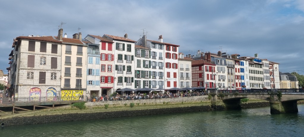 Je passe devant le Grand Hôtel, qui résume à lui tout seul un morceau de l’histoire et du patrimoine de cette ville, encapsulé aujourd’hui dans le marketing des Mercure. Je tourne à droite, rue Lormand, direction Pariès et son Muxu, le gâteau qui fait des bisous, l’incontournable escale de ma gourmandise. La musique de Txistus résonne dans le quartier piétonnier accompagnés par les danbolinas. Mes jambes sont prises d’une envie de s’élancer. Je connais cet air pour l’avoir dansé mille fois à l’école primaire puis dans les fêtes des villages quelques années plus tard. Mes pieds trépignent, me voilà sautillante avançant vers les bisous gourmands de la rue Port-Neuf, cette rue où habitait ma grand-mère à la fin de sa vie, un grand sourire éclairant mon visage. J’adorais ma grand-mère autant que ces gâteaux, bien que celle-ci ne se lassait pas de me répéter qu’on n’adore que Dieu !